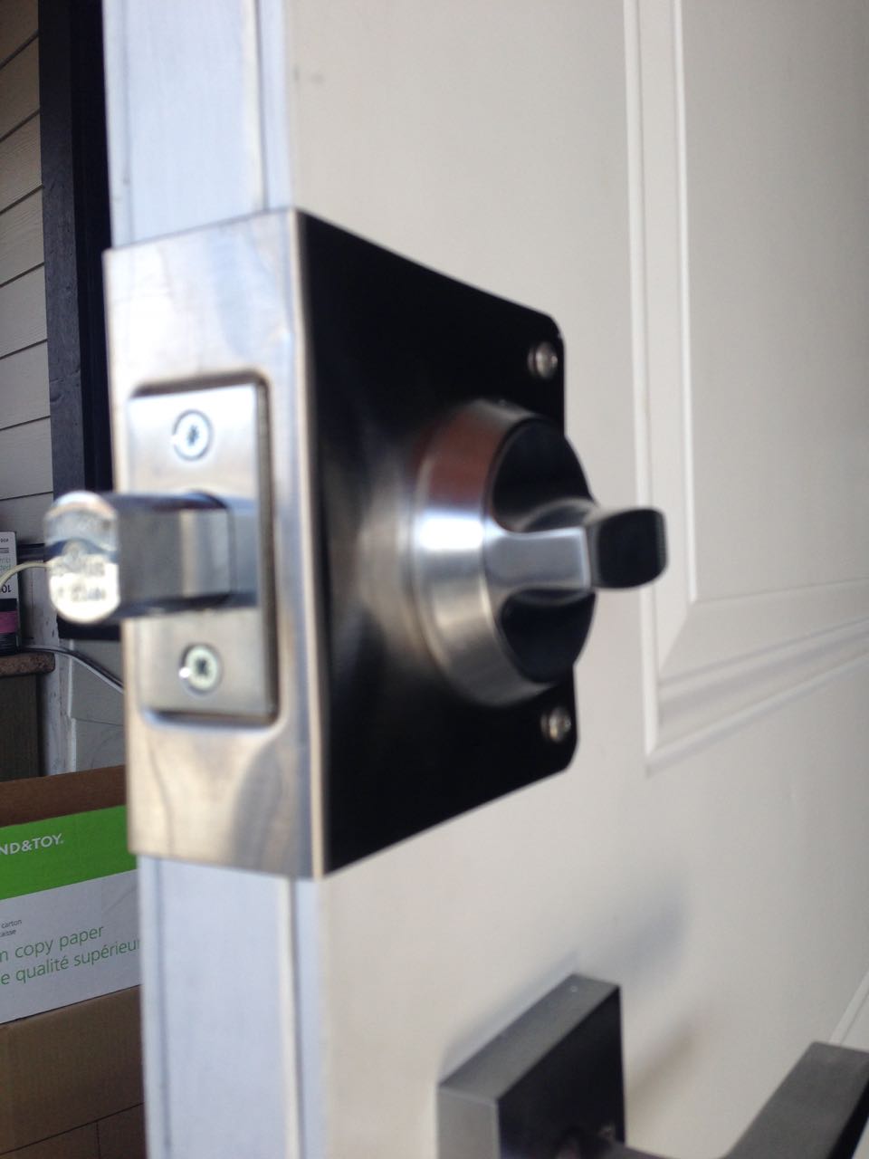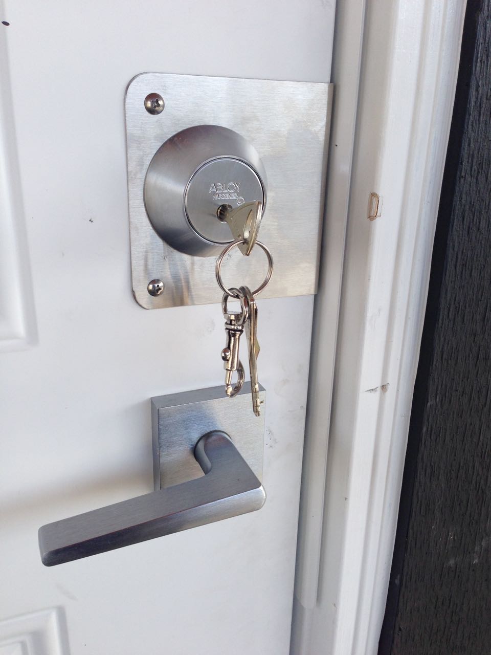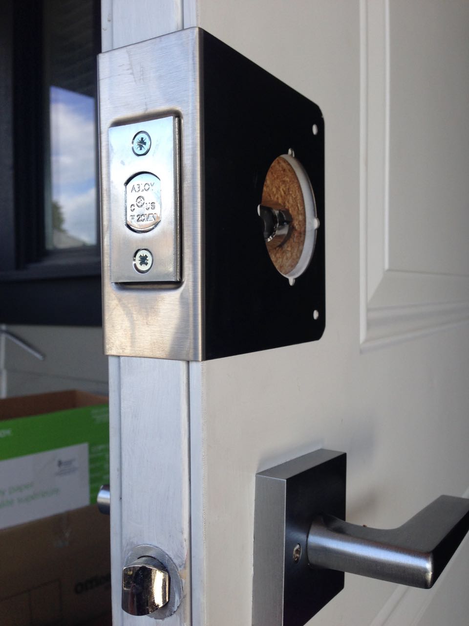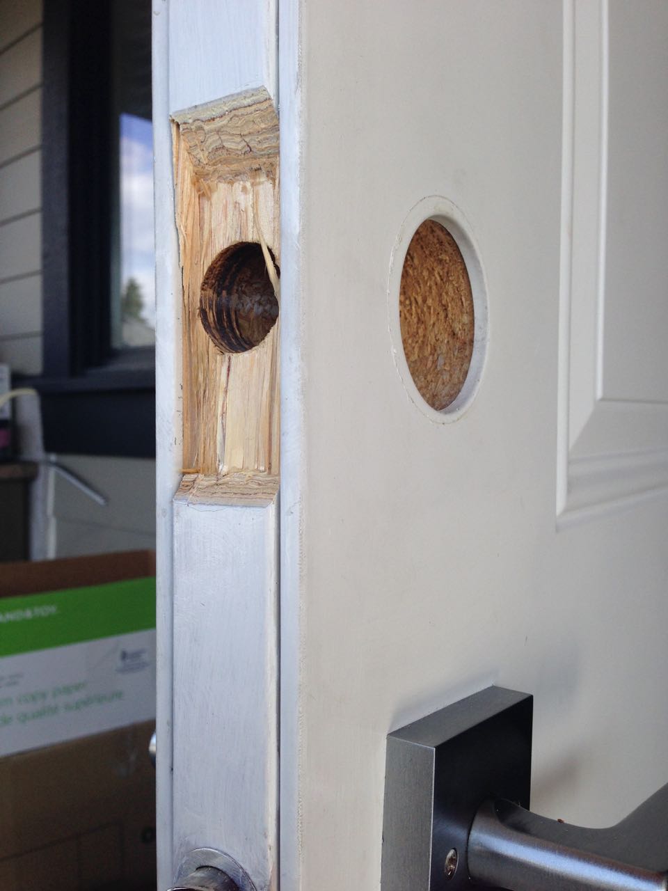 Prepping the door for installation of an Abloy Deadbolt, Door Reinforcer and Strike Plate (Vancouver Special)